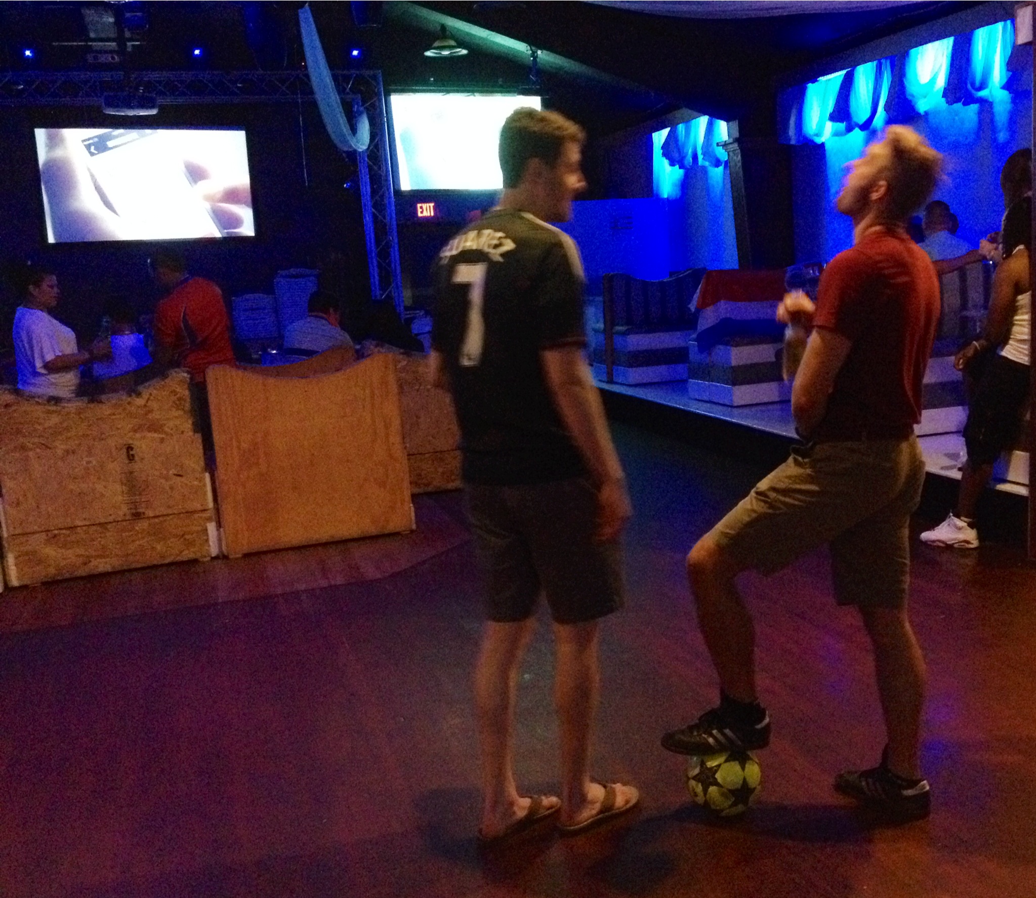 Just before the second half started, Adam, a squat young guy in a Costa Rica shirt, hopped out of a booth to introduce himself.
