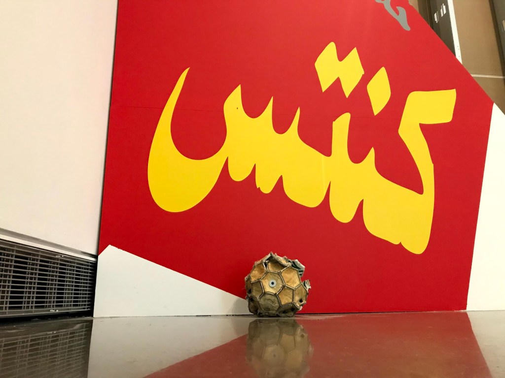 The inside-out soccer ball is symbolic of the Cold War’s impact on the Global South, especially South Asia, the artist says.