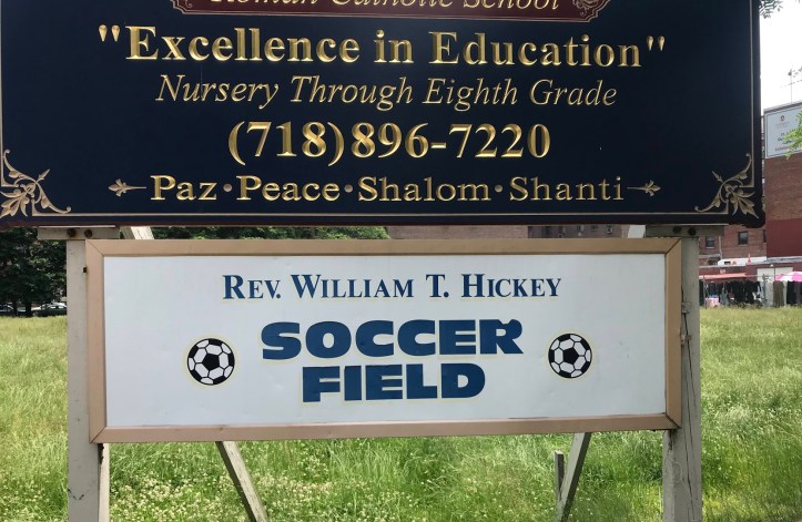 The field was affiliated with Our Lady of the Angelus Catholic Academy, which closed last year. Now it’s a verdant vacant lot.